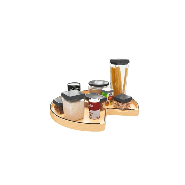Put a new "spin" on your corner cabinet organization with the 4CC-401 Series Craftsman Collection Kidney-Shaped Lazy Susan. Features gorgeous maple construction and a distinctive curved design in the front that allows the recessed black wire accents to double as a handle for easy operation.