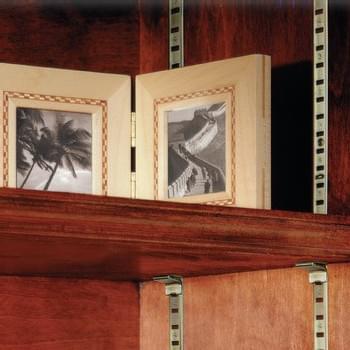 Versatile built-in pilaster shelving creates a custom look with sturdy, understated support in closets, bookcases and entertainment centers, kitchen cabinets and more. This high-strength steel mortise-mount pilaster shelving system features 1/2" vertical slot adjustability and countersunk nail, screw and staple holes. Numbered slots provide quick, accurate clip insertion. System holds up to 500 lbs. per shelf when properly installed. Can be installed on the surface or made flush with the wall or cabinet by making a dado cut. BHMA Grade 1 compliant. Available in a variety of sizes and finishes.