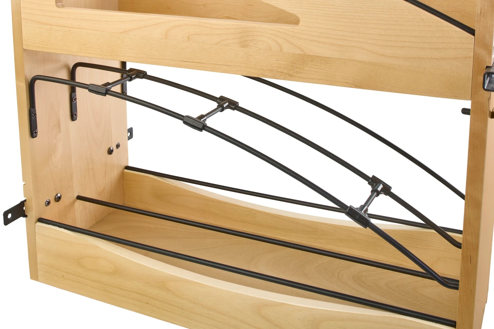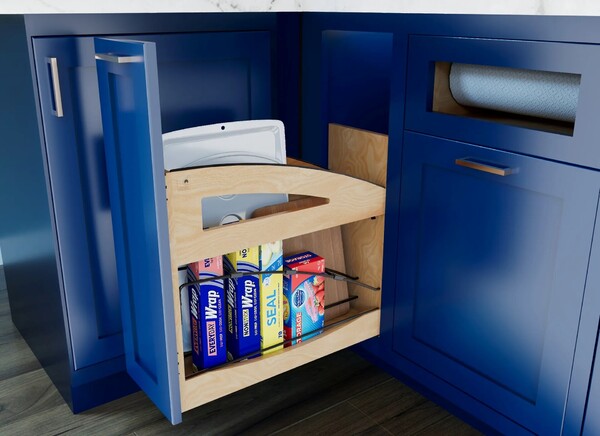 Organizing bakeware like cutting boards, trays, foil and plastic wrap doesn't have to be a chore. Make organizing fun with the Rev-A-Shelf® 447CC Craftsman Collection Base Cabinet Pullout. This organizer features that rich, distinctive Craftsman Collection look of visually appealing matte black round wire accents.