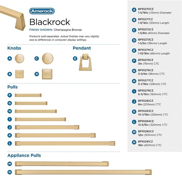 Blackrock - 18" Appliance Pull CC Champagne Bronze