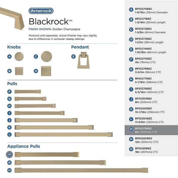 Blackrock - 8" Appliance Pull CC Golden Champagne