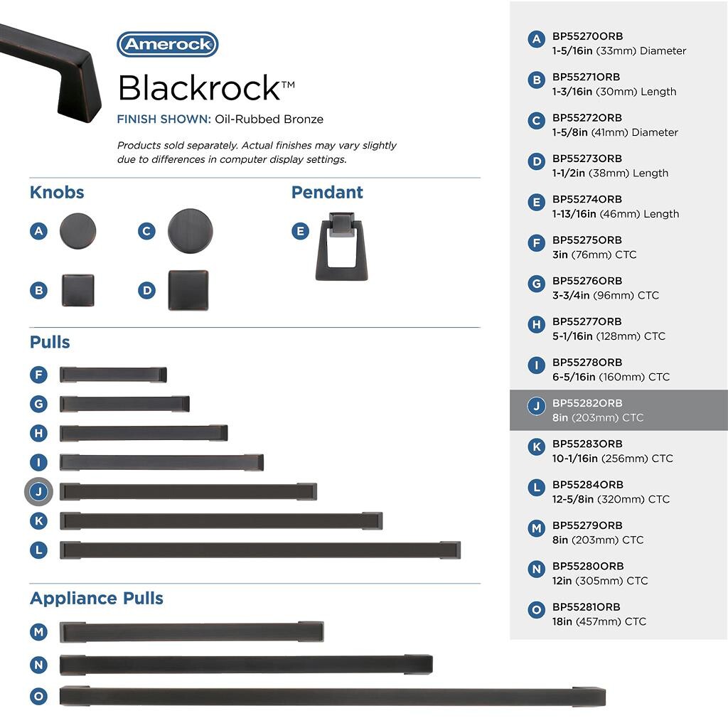 Blackrock Pull - Pull 8" CC - Oil Rubbed Bronze
