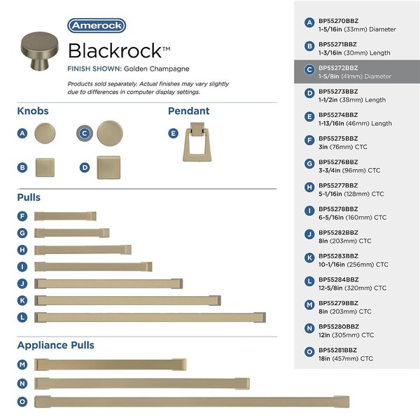 Blackrock - Square Knob 1-3/16" Golden Champagne