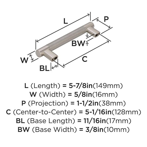 Esquire 5 1/16" (128mm) CTC Pull - Polished Nickel/Stainless Steel