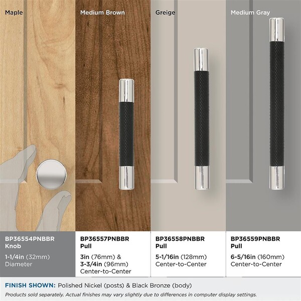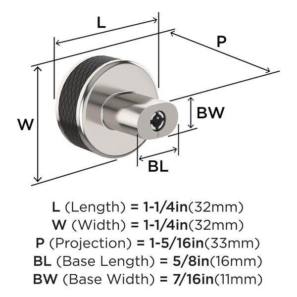 Esquire Knob 1-1/4" Polished Nickel / Black Bronze