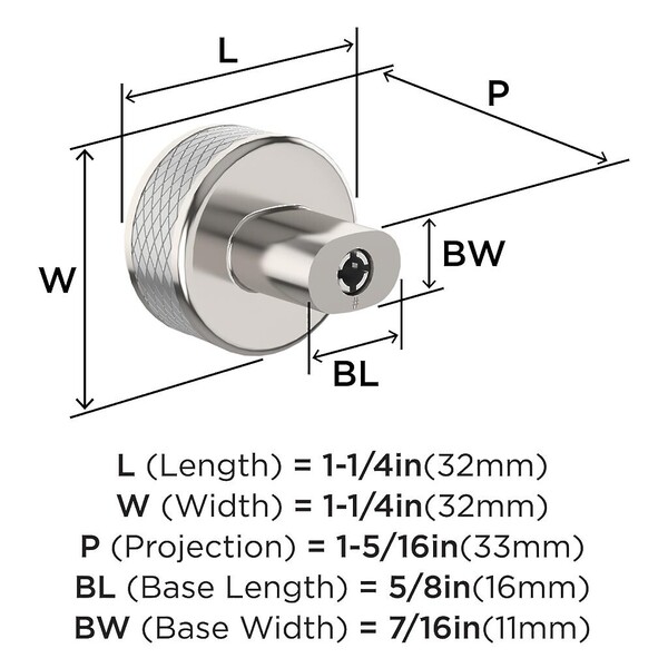Esquire Knob 1-1/4" Polished Nickel/Stainless Steel