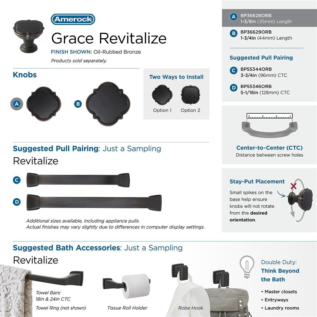 Grace Revitalize 44mm Floral Knob - Oil-Rubbed Bronze