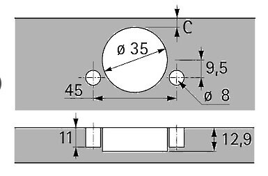 - Drilling pattern TB 45 x 9,5 mm