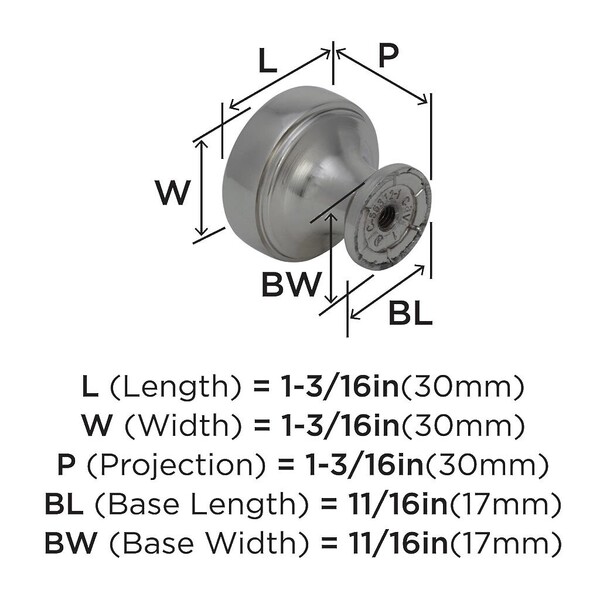Highland Ridge 1-3/16" Knob - Satin Nickel