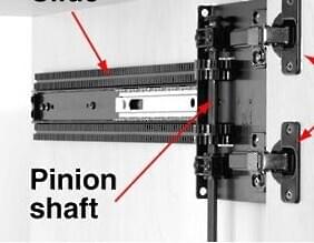 75 lb. class 3/4 extension heavy-duty pivot door slide features a rack and pinion design with multiple hinge options. This slide greatly reduces door sag, speeds installation and minimizing adjustments. Baseplate attached; hinge must be ordered separately. Recommended for vertical doors with a maximum height of 72" and width of 26".