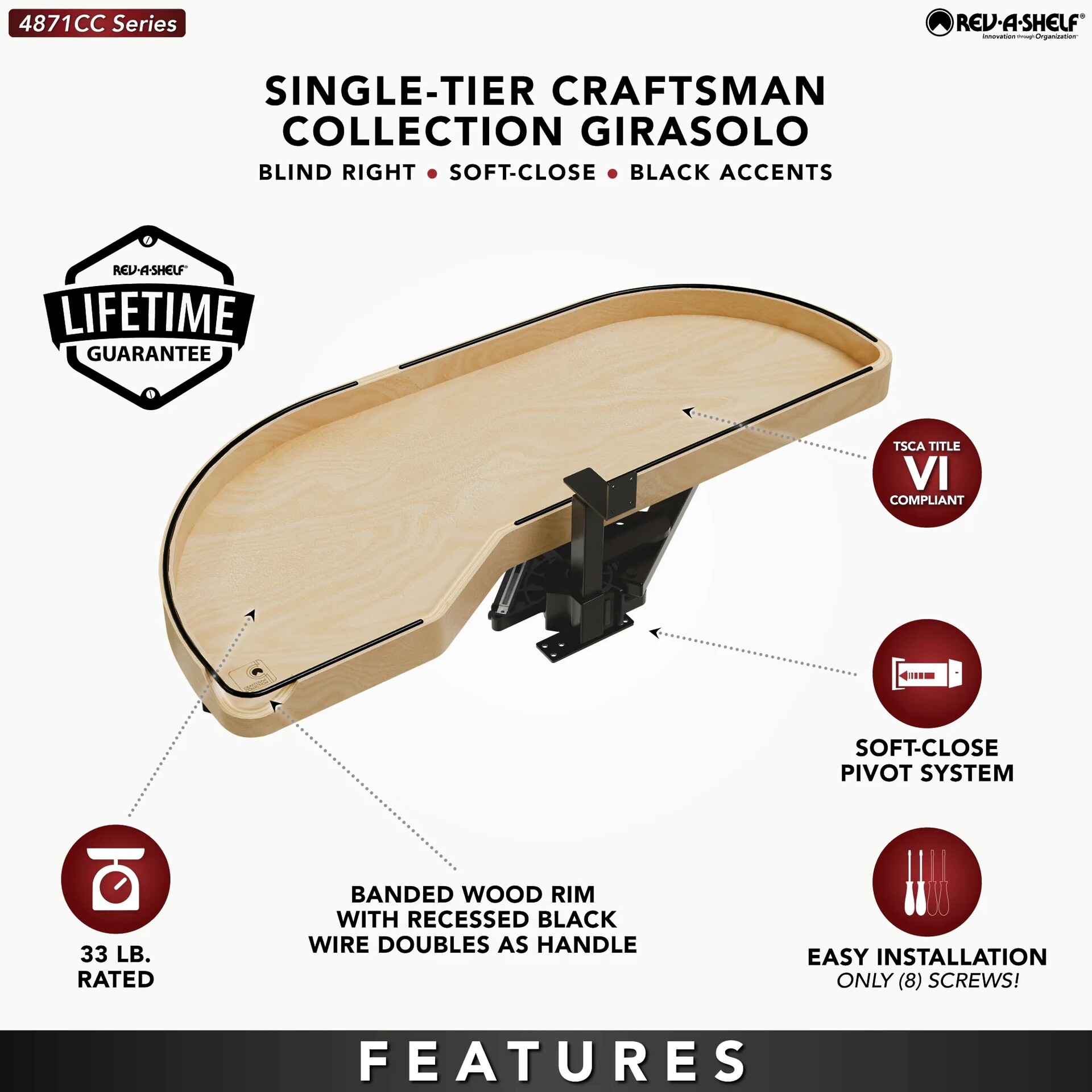 Maple Single Tier Craftsman Collection Girasolo w/ Soft-Close and Black Accents for 18" Left Opening/Blind Right Corner Cabinet