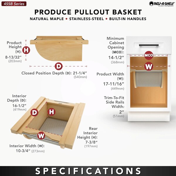 Natural Maple/Stainless-Steel Produce Basket for 18" Base Cabinets