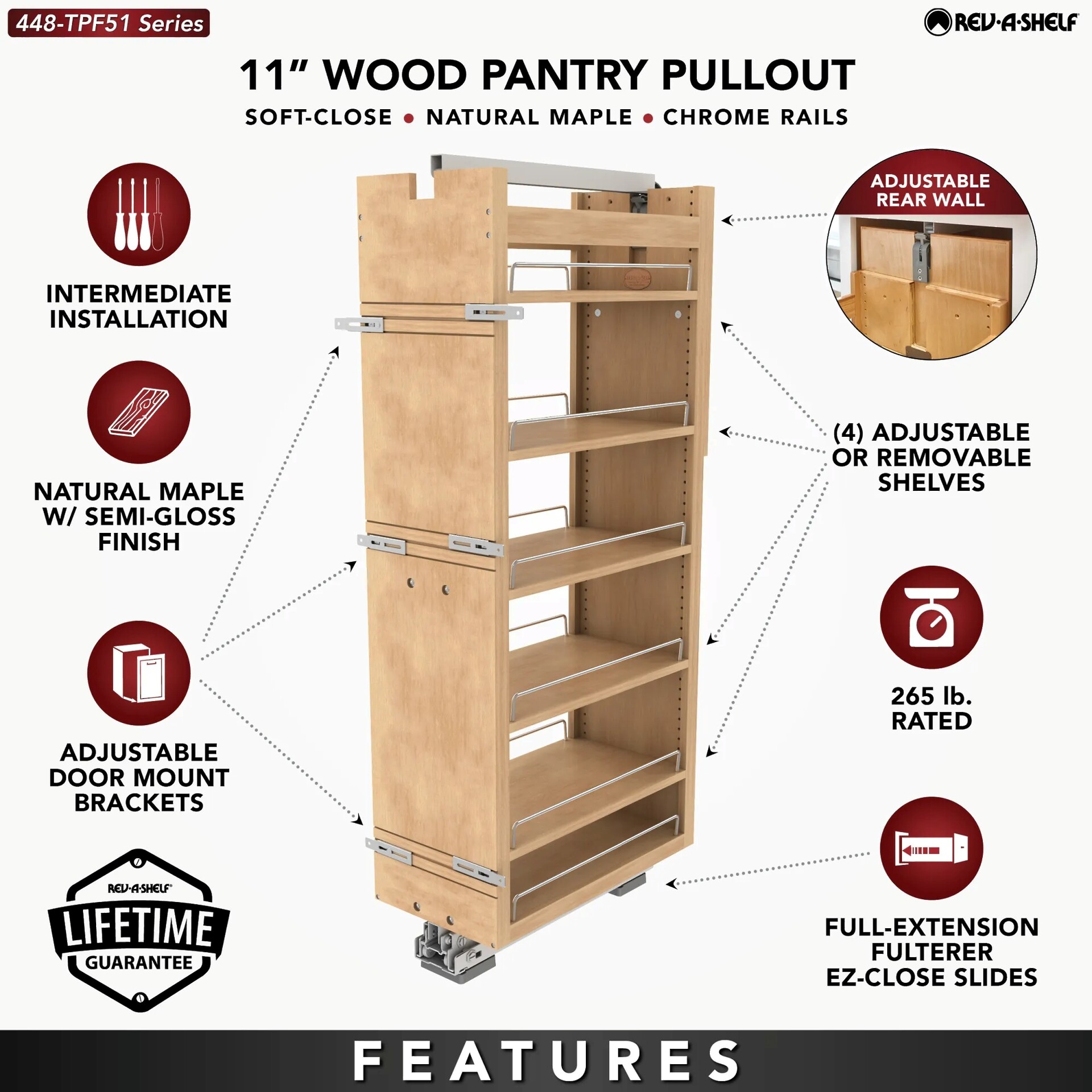 Rev-A-Shelf - 11" x 51" Maple Pullout Wood Tall/Pantry Accessories