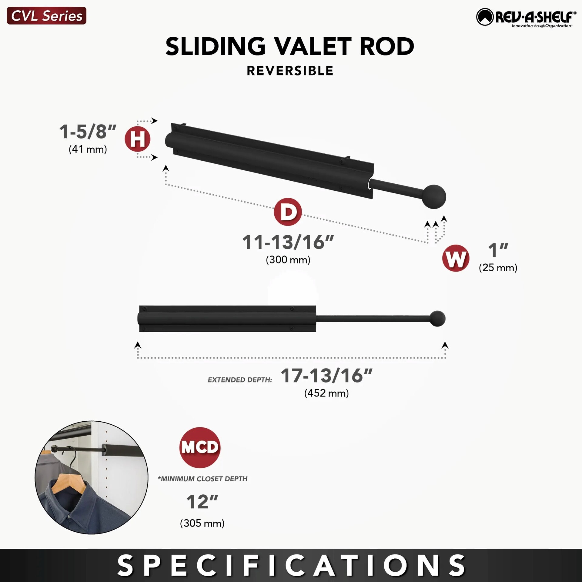 Rev-A-Shelf - 12" Chrome Standard Valet Rod