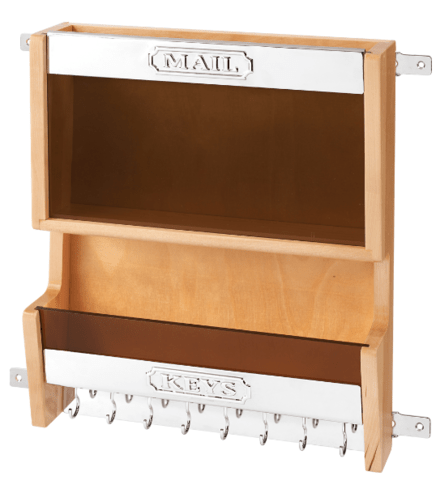 This beautiful mail organizer provides storage for letters and keys. Available in white or natural, it comes with chrome accents and durable, easy to clean acrylic panels which add a touch of elegance to any design and keeps your counters clutter free. It holds standard and flat envelopes, has eight key hooks and features patented adjustable mounting brackets that ensure easy installation on variable door styles.