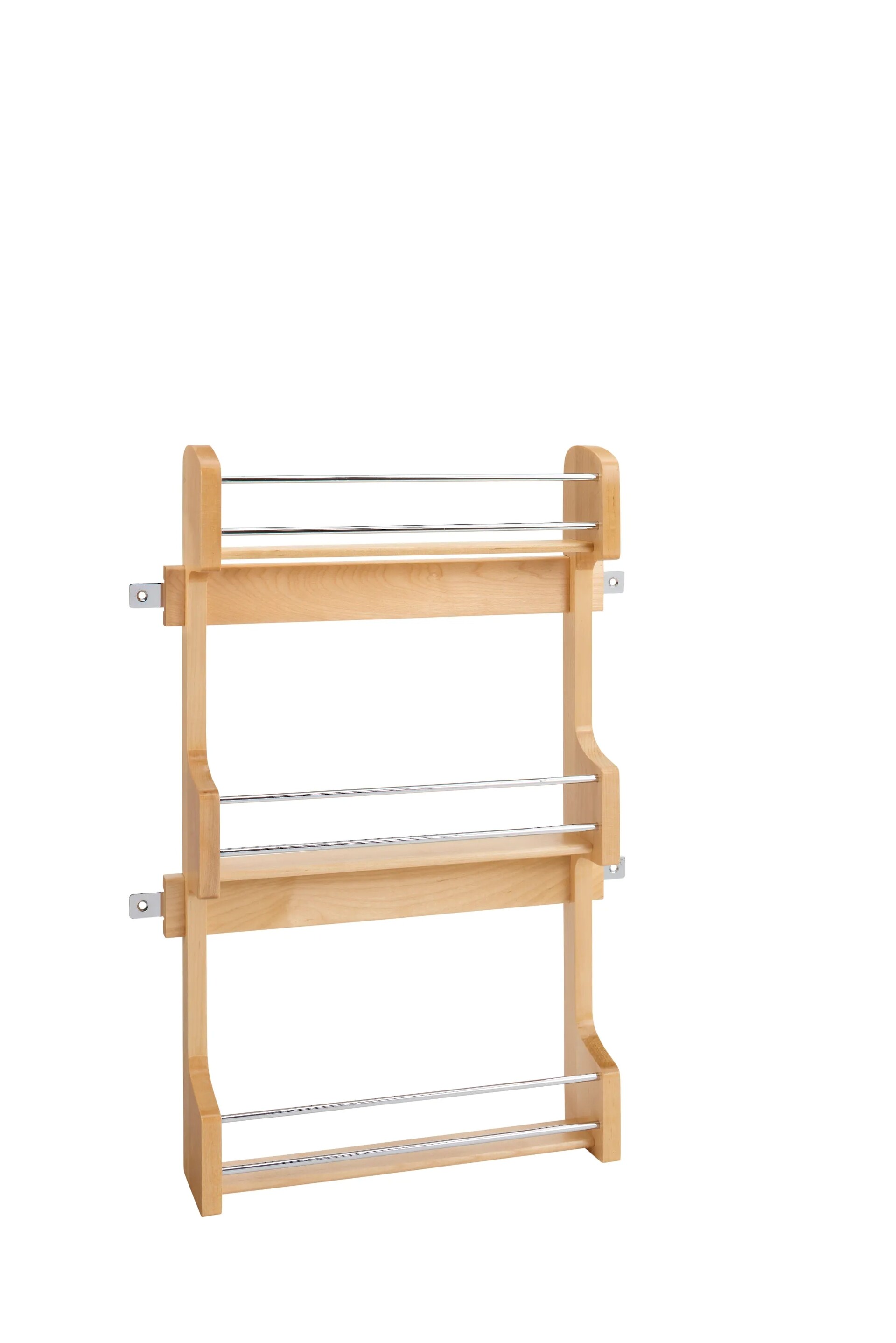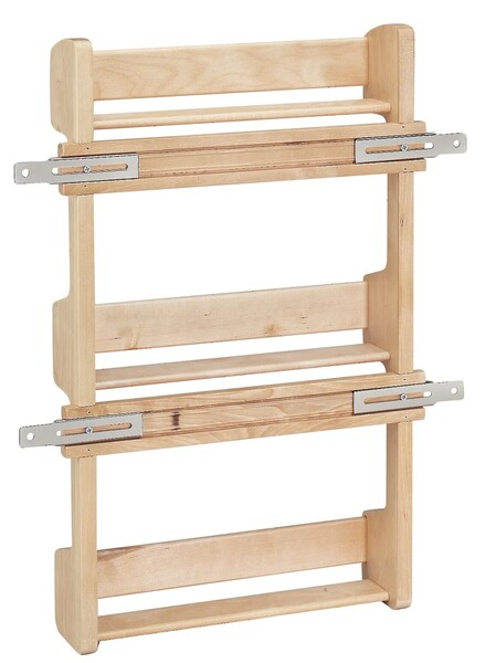 Maintain shelf space and keep spices within reach with a Wood Classic Door Mount Spice Rack. Made of attractive maple hardwood, this storage saver is available for Wall 15", 18" and 21" cabinets. The 4SR Series features a UV-Cured clear finish that ensures an acceptable match to most cabinets and easily installs with just four screws.