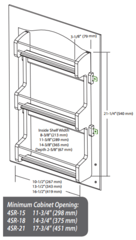 - Minimum cabinet opening - 14-3/4"
