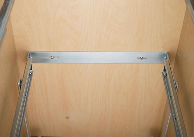 - Mounts to cabinet floor, rear and faceframe of cabinet