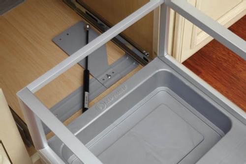 Obtain that custom kitchen look with our beautiful single and double door mountable waste containers. The only brushed aluminum system with Rev-A-Motion™ Soft-Open/Soft-Close slide technology that provides smooth operation even under the heaviest of loads. The design features mitered corners that make up the sleek aluminum frame, adjustable door mount brackets and a durable, versatile and easy to clean polymer base. Great Design, Great Quality.