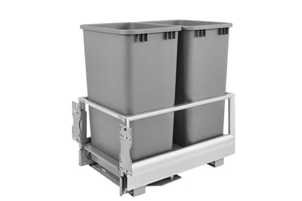 Rev-A-Shelf - 15-5/8" Double 50qt Bottom Mount Rev-A-Motion‚ Aluminum Frame Waste Containers