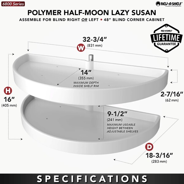 Rev-A-Shelf - 16-1/8" x 33" White Lazy Susan Half-Moon 2 Shelf (Pivot and Slide)