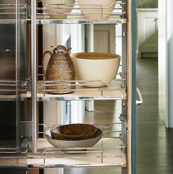 Rev-A-Shelf’s 5300 Pullout Pantry Series is the answer to your full access (frameless) cabinetry needs. The series offers basket depths for 24" deep cabinetry and comes in five different widths and four height ranges, one width available for face frame cabinets. Available in your choice of beautiful maple or contemporary gray solid bottom to match every kitchen style.