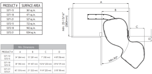 • Accommodates full access (frameless) blind corner cabinets with 18” cabinet openings