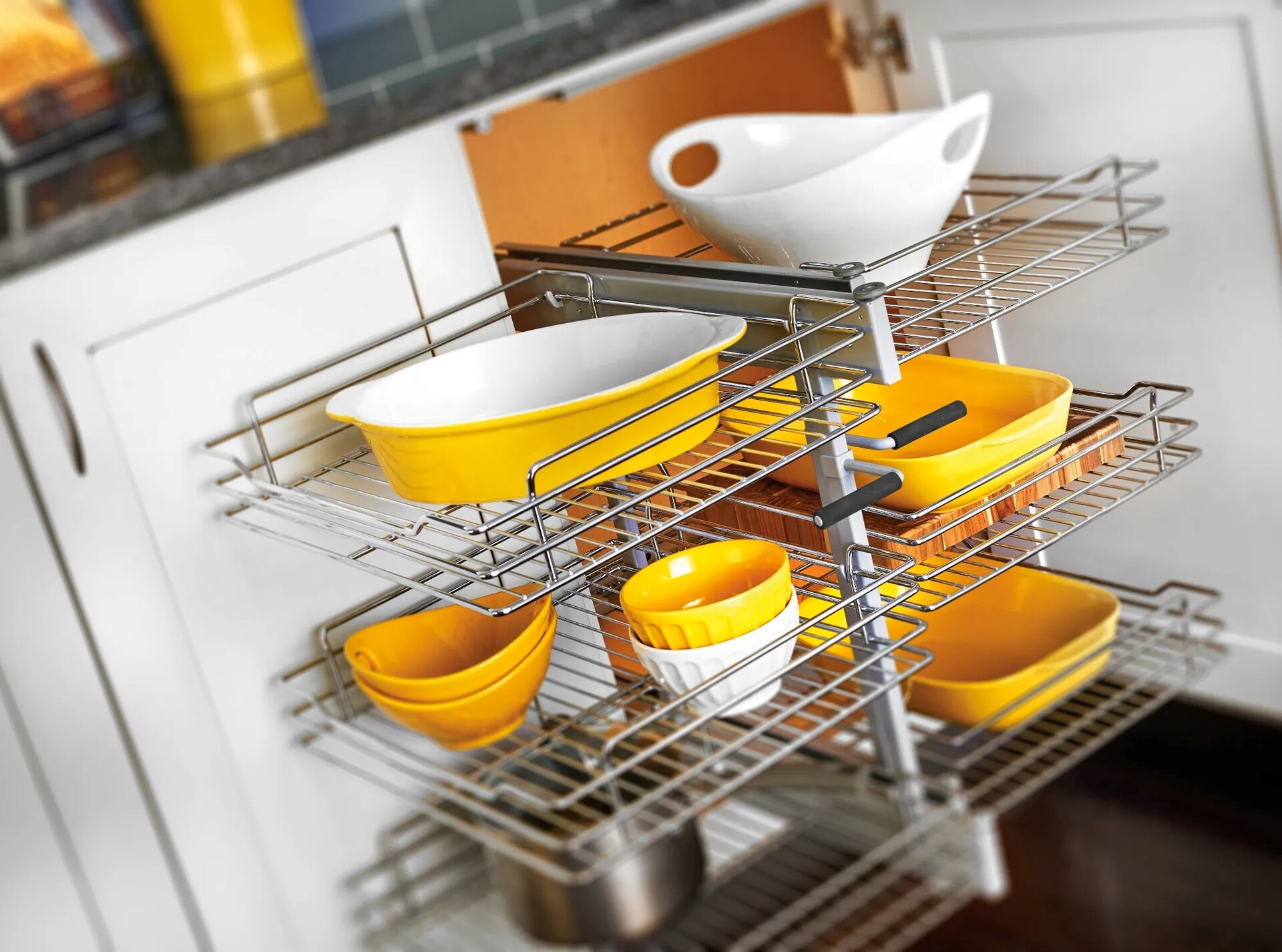 Products > Corner Unit Solutions > OPTIMIZER WIRE BOTTOM > Rev-A-Shelf - 18" Three-Tier Pullout Soft-Close Wire Pull-Slide-Pull