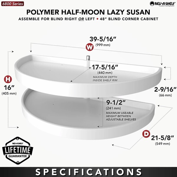 Rev-A-Shelf - 19-1/4" x 39" White Lazy Susan Half-Moon 2 Shelf (Pivot and Slide)