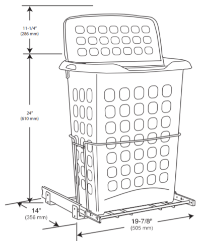 Keep dirty clothes from piling on the floor with Rev-A-Shelf's large Pullout Polymer Hamper. The HPRV Series features a shallow depth for closet and vanity applications, full-extension ball bearing slides, large capacity and installs with just four screws. This polymer hamper is available with or without a removable lid and with or without Rev-A-Shelf's classic door mount bracket kit.
