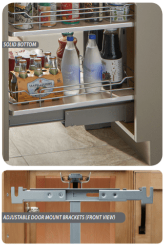 Rev-A-Shelf’s 5300 Pullout Pantry Series is the answer to your full access (frameless) cabinetry needs. The series offers basket depths for 24" deep cabinetry and comes in five different widths and four height ranges, one width available for face frame cabinets. Available in your choice of beautiful maple or contemporary gray solid bottom to match every kitchen style.