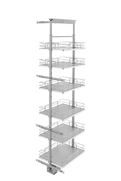 Rev-A-Shelf’s 5300 Pullout Pantry Series is the answer to your full access (frameless) cabinetry needs. The series offers basket depths for 24" deep cabinetry and comes in five different widths and four height ranges, one width available for face frame cabinets. Available in your choice of beautiful maple or contemporary gray solid bottom to match every kitchen style.