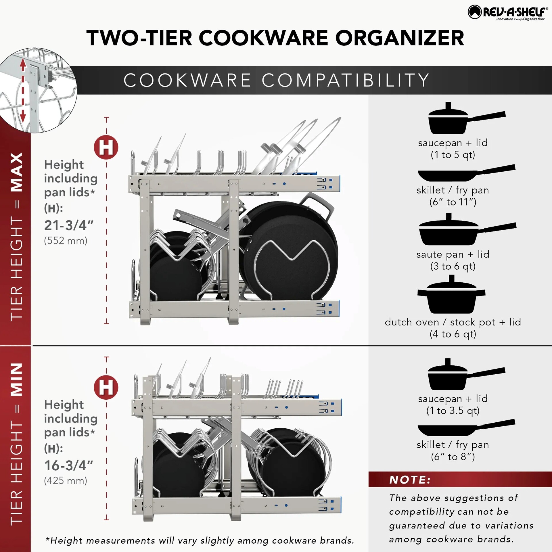 Rev-A-Shelf - 20-3/4" x 22" Base Cabinet Pullout 2 Tier Cookware Organizer with Soft-Close Slides