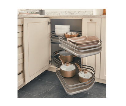 Reach for the stars and fulfill your storage needs with the Cloud Orion Gray Contemporary Organizer. Designed for full access (frameless) blind corner cabinets with 15", 18" or 21" openings, the new Cloud with orion gray flat wire and solid bottom shelves with a textured linen finish complement contemporary kitchen and adds updates style to traditional and transitional designs. Available in two-tier left or right-hand door options, the Cloud fits into nearly all blind corner applications and is available with or without soft-close (sold separately).