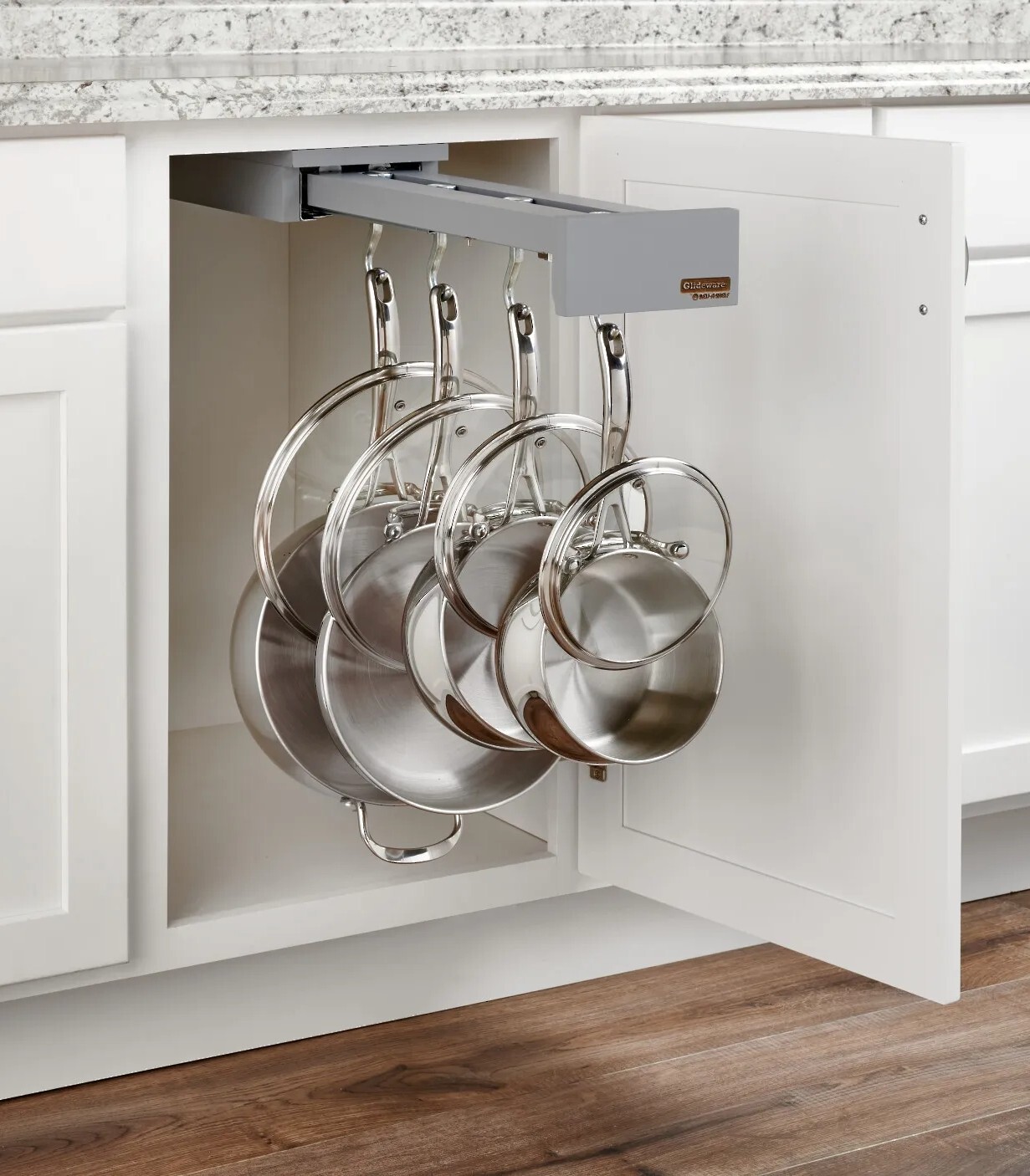 Glideware(TM) is a revolutionary organizing pullout that allows you to securely hang your accessories inside of your cabinet and brings them out only when you want them.
