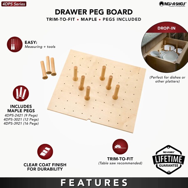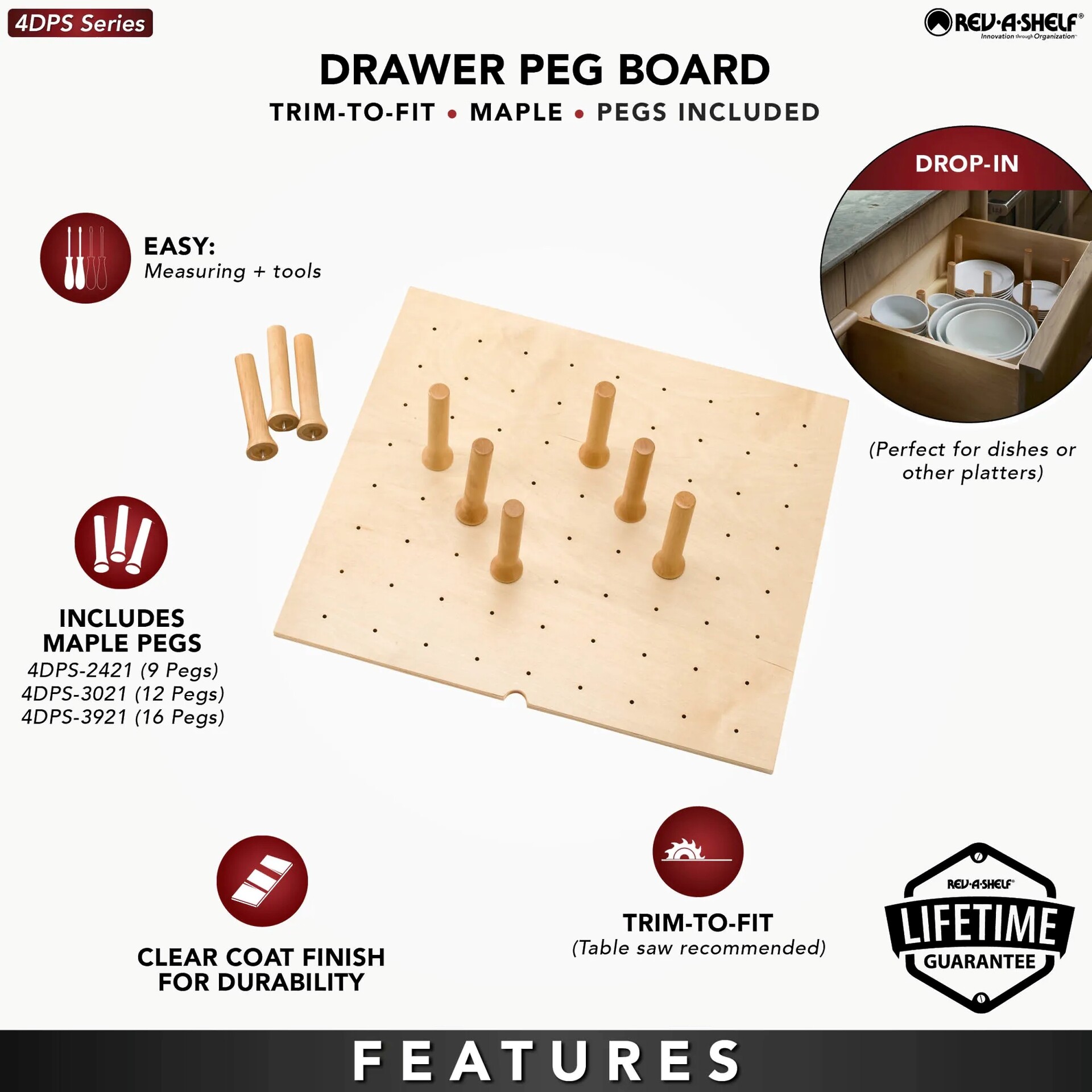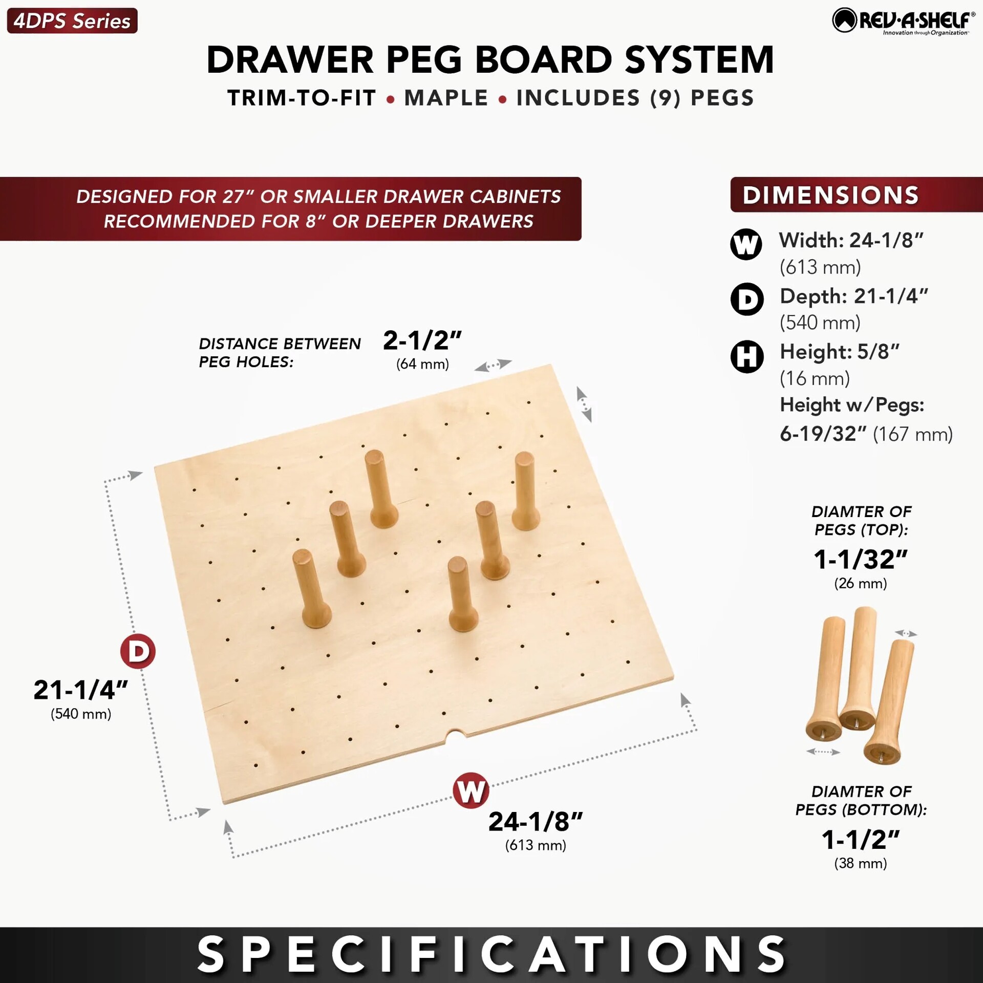 Rev-A-Shelf - 24" Maple Cut-To-Size Insert Peg System for Drawers