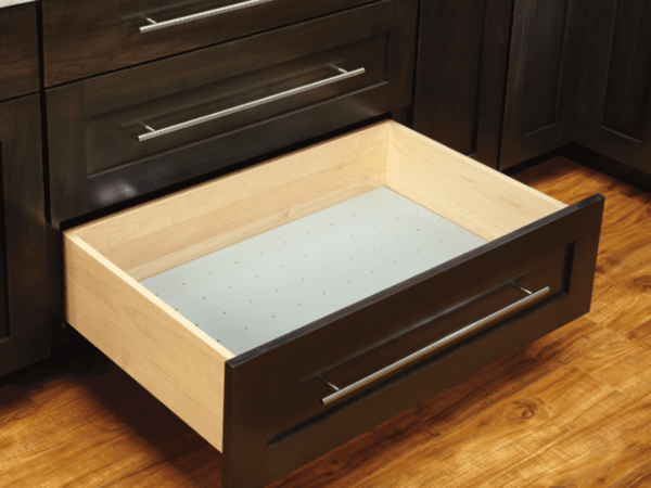 Organize your deep drawers with our new Vinyl Peg Board. The board has a sound dampening vinyl covering that is easy to maintain and works with either our wood pegs or new chrome accessories (purchased separately). Available in three standard sizes (4DPBG-2421 fits 27” and smaller cabinets, 4DPBG-3021 fits 30” and 33” cabinets, and the 4DPBG-3921 fits 36”, 39”, and 42” cabinets) each size can be trimmed to fit and with the easy drop-in installation you can take your drawer from drab and messy to chic and orderly within seconds.