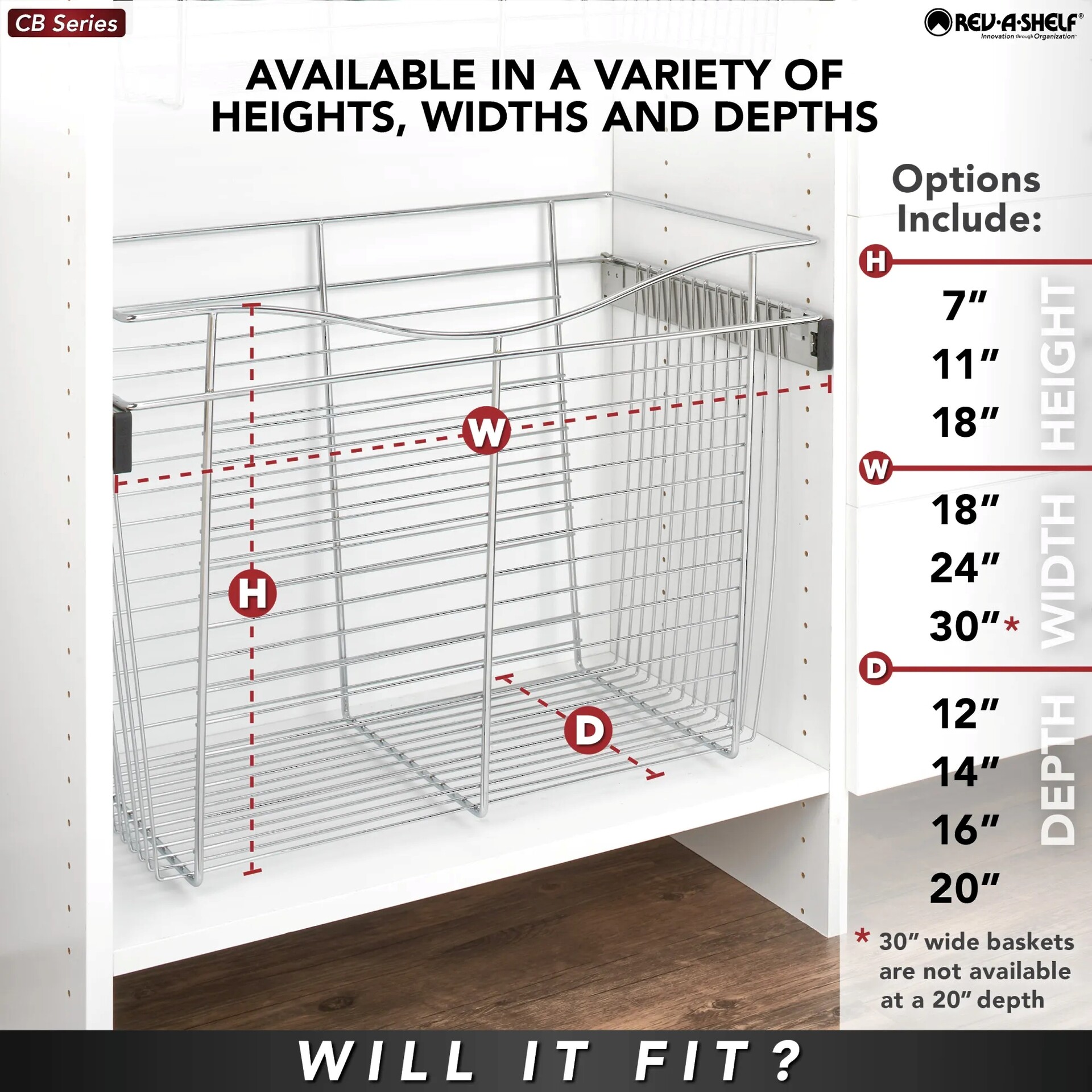 Rev-A-Shelf closet baskets are a perfect addition to bring your closet items to your fingertips. Available in multiple finishes and sizes, you will have no problem finding the right size for your custom closet system.