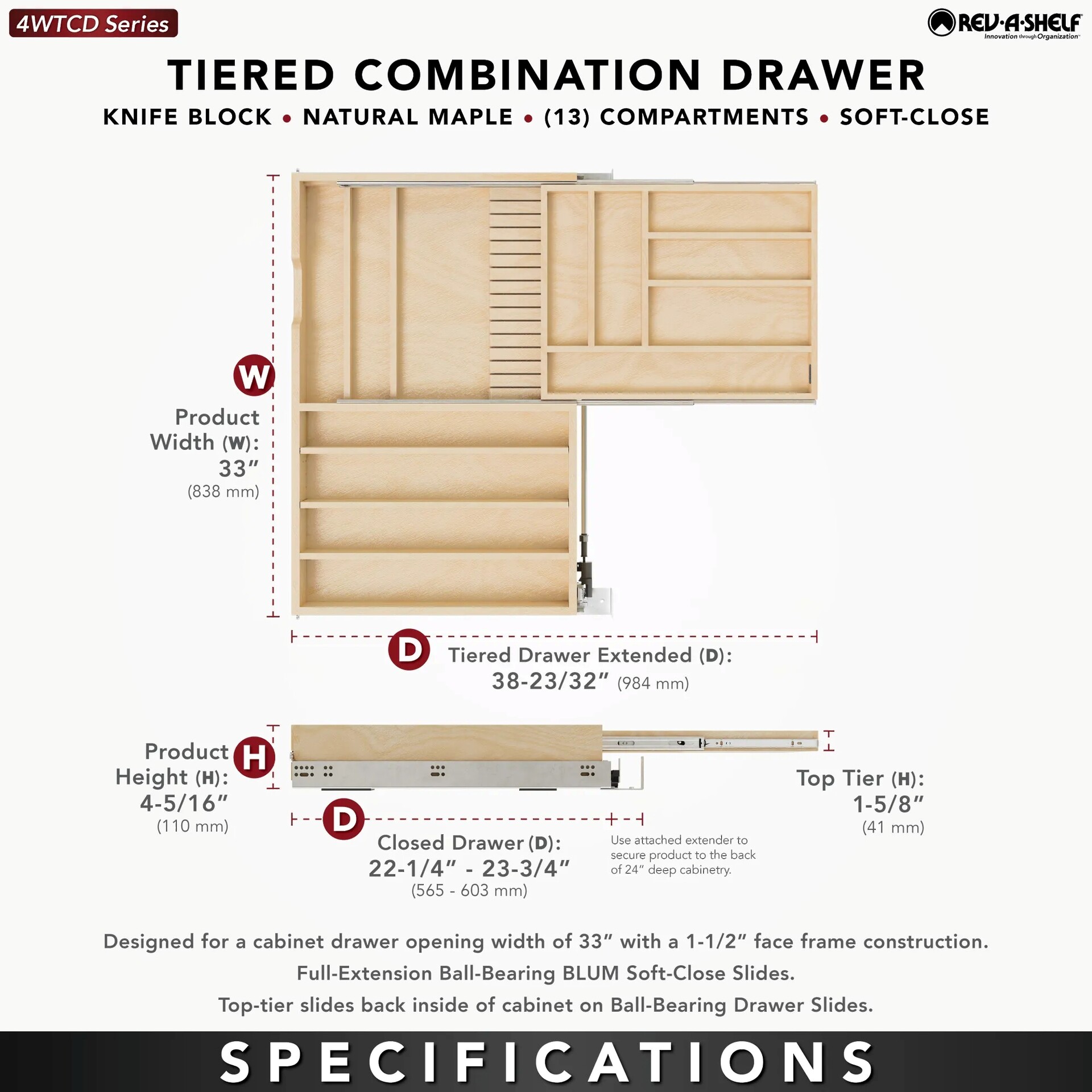 Rev-A-Shelf - 33" Opening - Complete System Tiered Combination Organizer