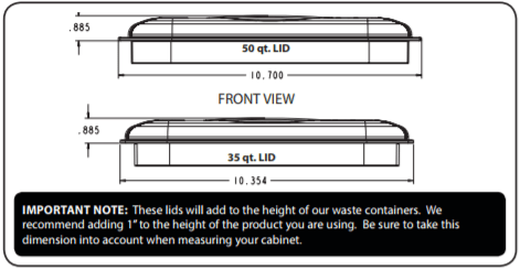 Rev-A-Shelf is now offering flip-up lids for our most popular waste containers. They are available for 35 Qt. and 50 Qt. containers, in a variety of different colors.
