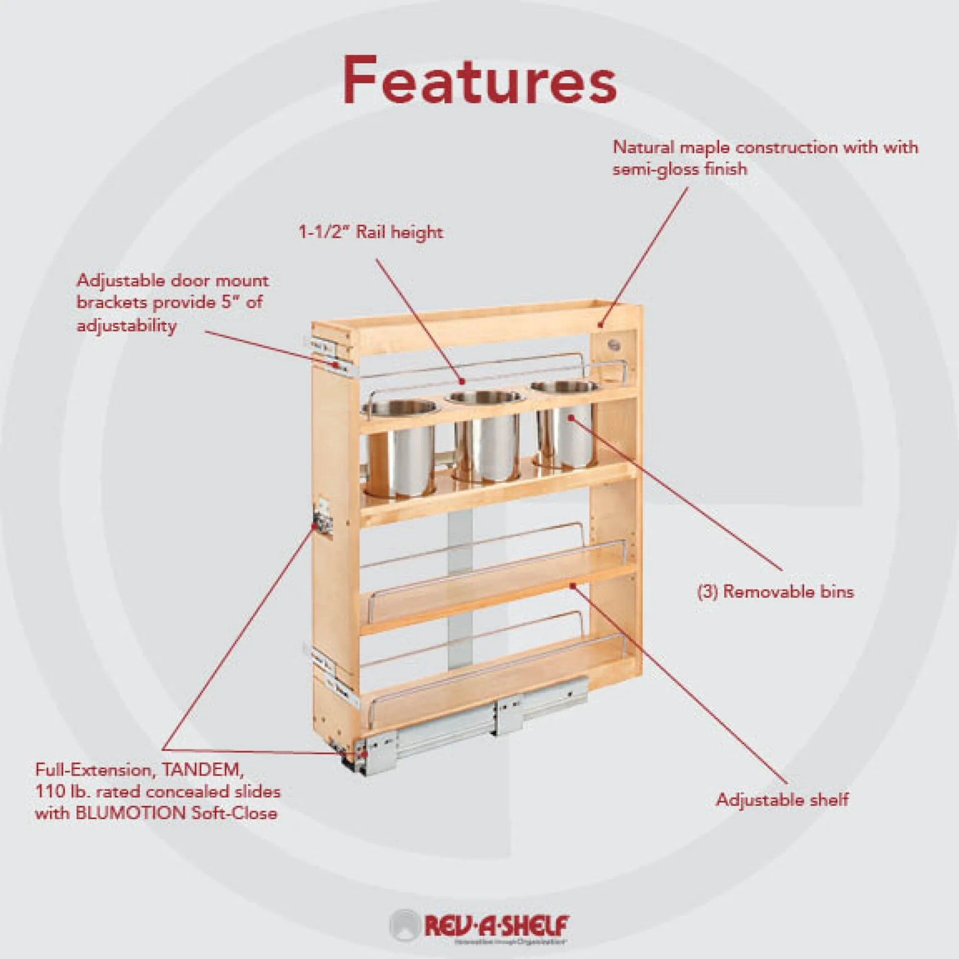 Rev-A-Shelf - 5" Base Utensil Pullout w/Blumotion Soft-Close