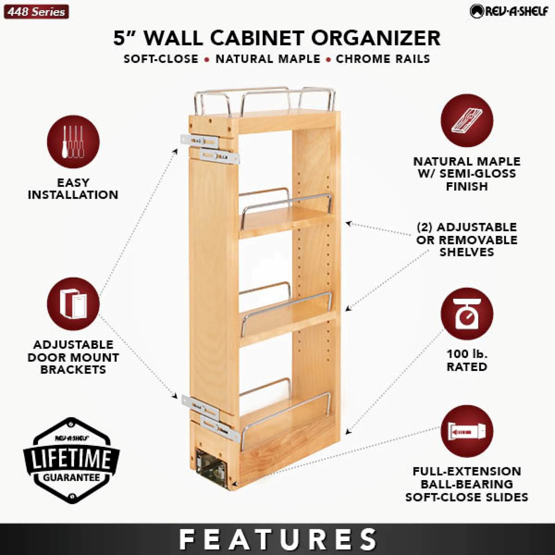 Rev-A-Shelf - 5" Cabinet Pullout Organizer with Soft-Close Wall Accessories