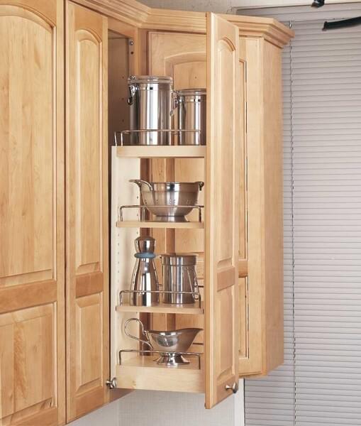 Do you need that one item in the back of your wall cabinet, and the only way to access it is to pull everything out? Stop the madness with Rev-A-Shelf's pullout shelving system, whose open design ensures you can effortlessly find everything. Available in varying heights and sizes, they door mount giving you a uniquely customized look and easy operation.
