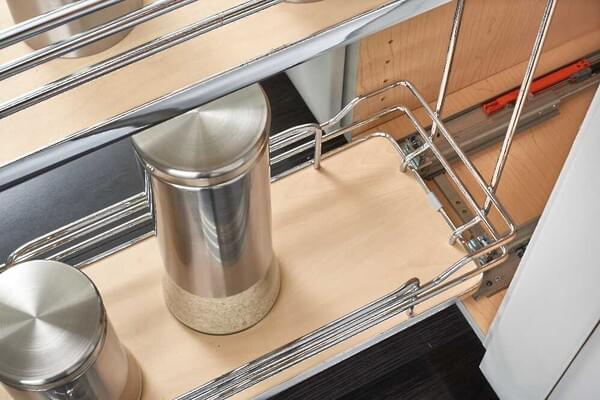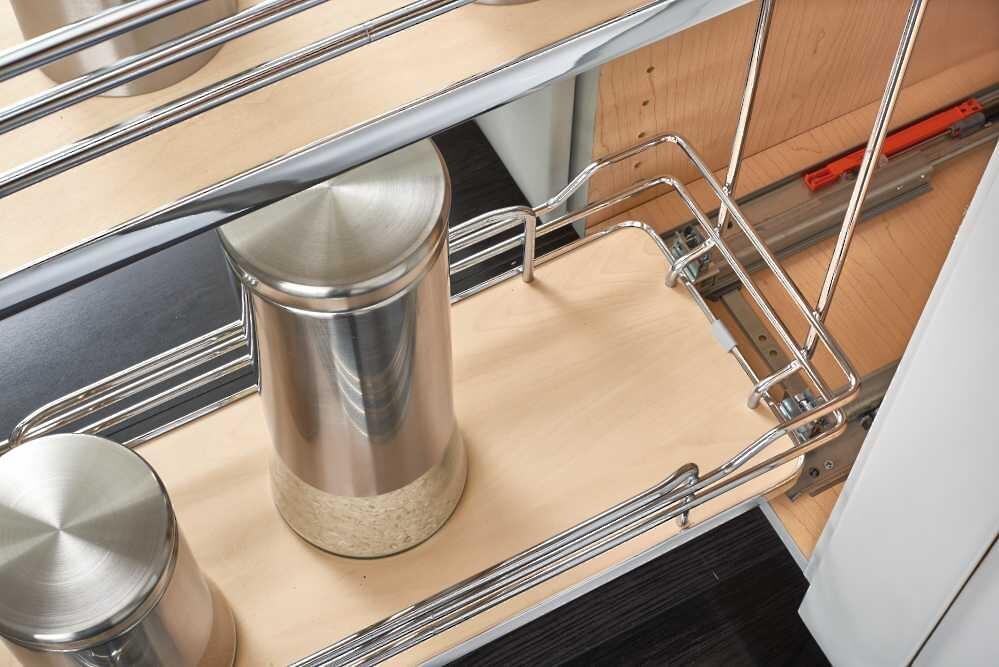 Bring the elegance with this chic design into your home with the Rev-A-Shelf 5322 Series. This Two-Tier Base Organizer combines clean lines, modern chrome or orion gray flat wire accents, and your choice of luxurious gray, maple or orion gray shelving surfaces to create a striking piece of organizational technology. Features patented door mount brackets, Blum soft-close slides system and heavy duty construction.