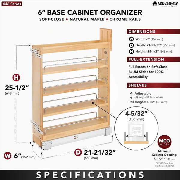 Rev-A-Shelf - 5" Maple Base Cabinet Pullout Organizer with Blumotion Soft-Close