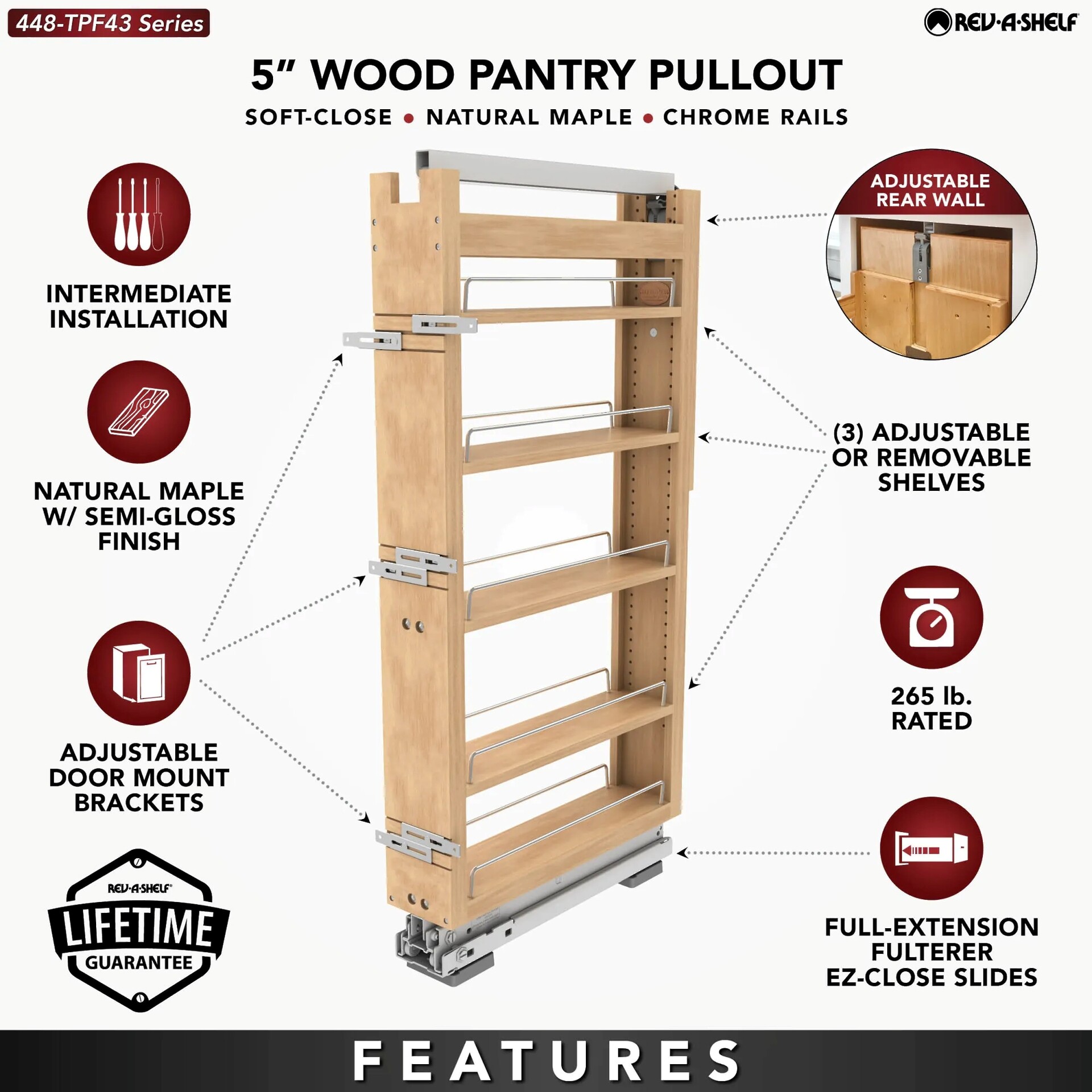 Rev-A-Shelf - 5" x 43" Maple Pullout Wood Tall/Pantry Accessories