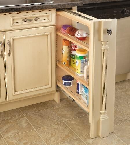 Are you looking for a better way to store hand towels and cleaning supplies in the kitchen? Look no further than the new 432TB Series Filler Organizer, featuring natural maple construction, full-extension, ball-bearing slides with soft-close, two towel bars and a static shelf with chrome wire accents.