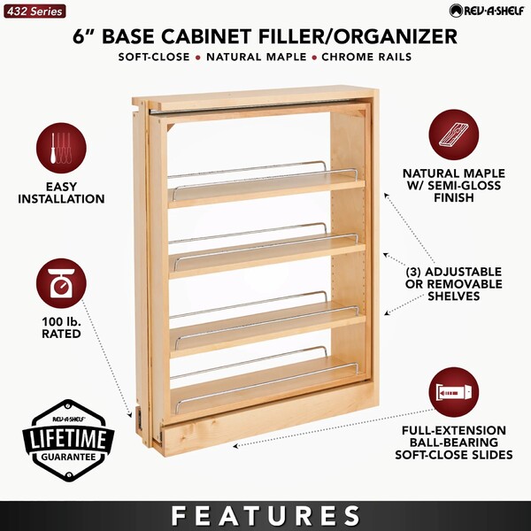 Rev-A-Shelf - 6" Filler Pullout Organizer with Ball Bearing Soft-Close