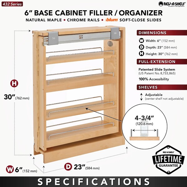 Rev-A-Shelf - 6" Filler Pullout Organizer with Blumotion Soft-Close