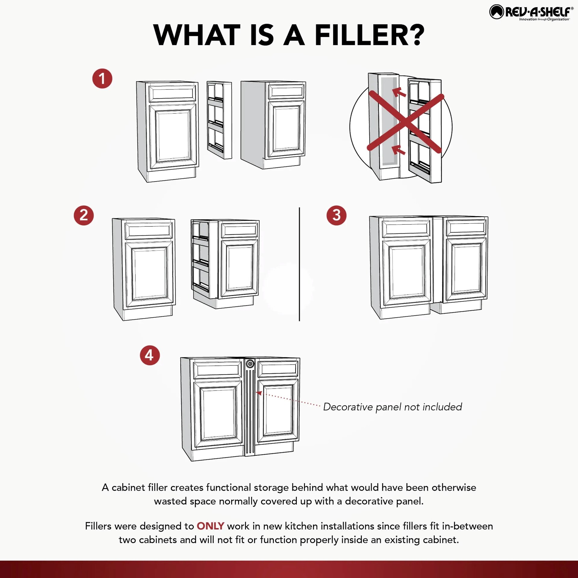 - Fillers do not go inside of a cabinet, they install between cabinets